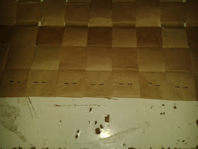 Na stůl si rozložte většinu proužků. (já jich dala 15) Oba krajové proužky položte rozevřením směrem ven, díky tomu se vám potom podaří lépe košík ukončit a hlavně to bude i lépe vypadat ;)